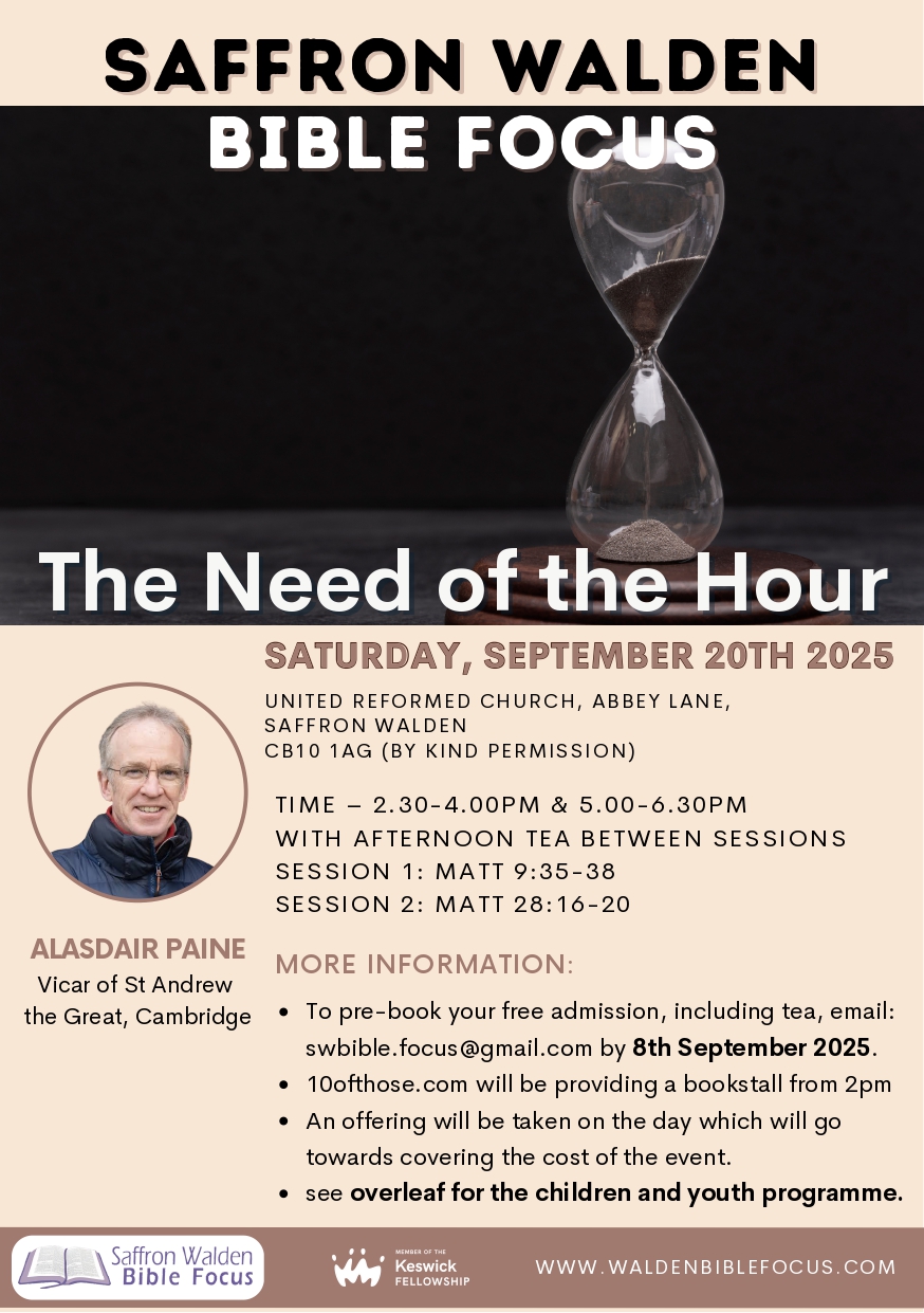 In association with Keswick Ministries, Walden Bible Focus is pleased to welcome Revd Alasdair Paine, Vicar of St Andrew the Great, Cambridge, so speak on “The Need of the Hour.”