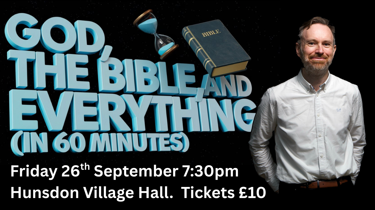 Hunsdon Village Hall 45 High Street. Hunsdon, Ware, Hertfordshire, United KingdomGod, the Bible, and Everything is the ultimate one-hour comedy charge through the whole Bible! 66 books, 12 tribes, 2 testaments and a snake in a pear tree. BBC sitcom writer and stand-up theologian James Cary explains iconic stories as you’ve never heard them before. From Adam to Zadok, it’s fast, furious, and laugh-out-loud funny. […]